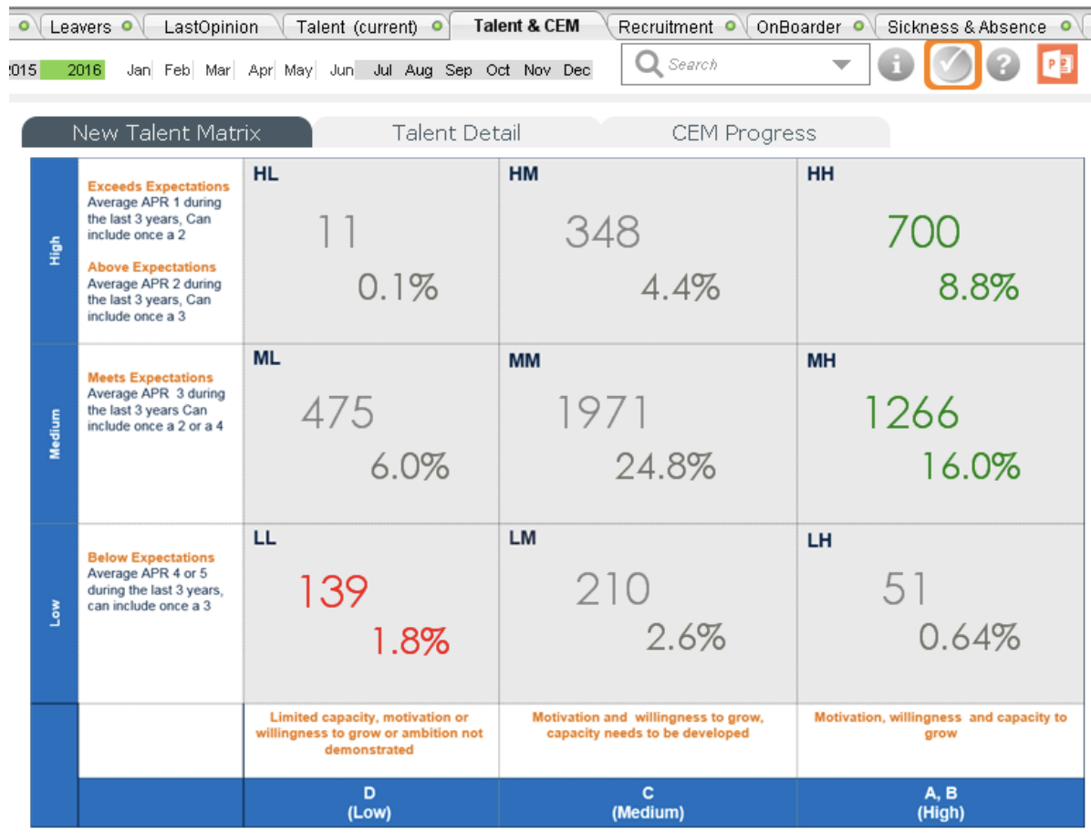 Figure 3: HR dashboard: Talent 9 box grid