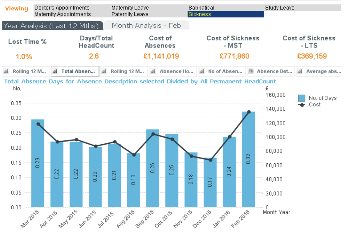 Figure 5: HR Dashboard: Sickness and absence