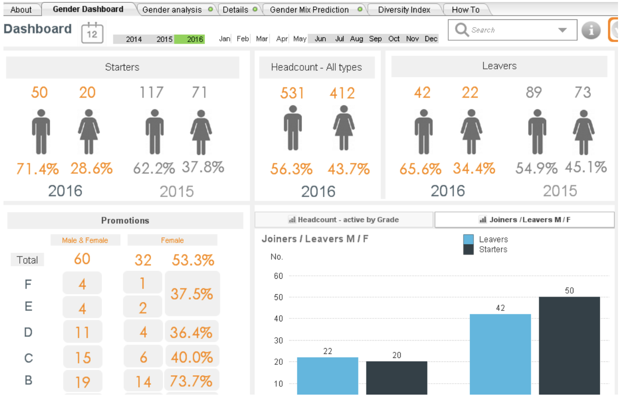 Now that the tool has gained strong reputational impact across the organisation, there is real appetite to explore how it can be applied to other areas, with an application focused on Diversity & Inclusion already in production (Figure 6). This incorporates a predictive analysis slant which is a very exciting development for the HR team and demonstrates the next step in the HR analytics journey that Capgemini wants to take.