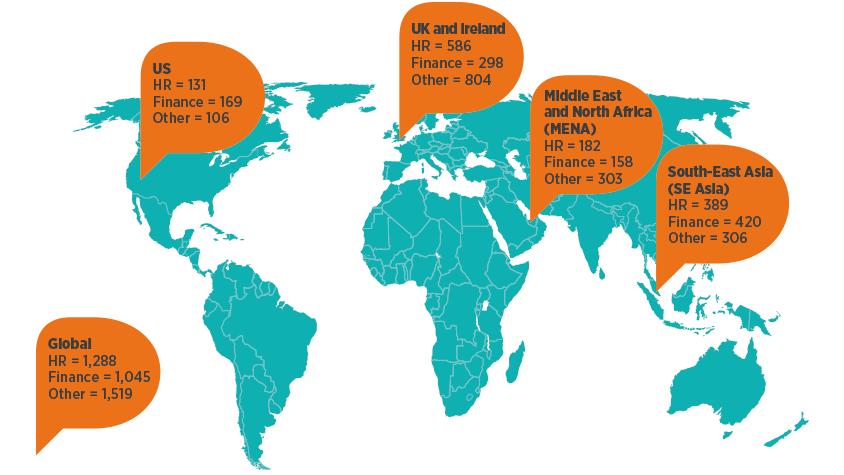 [Base: global HR (n=1,288); global finance (n=1,045); global other (n=1,519)]