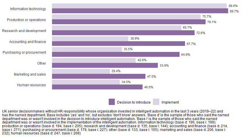 Figure 1: Departments involved in the decision to introduce or in implementing intelligent automation