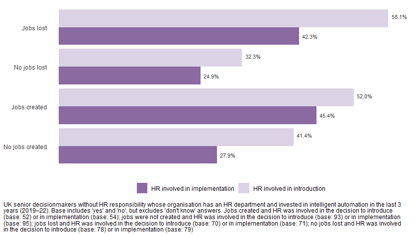Figure 6: HR involvement in the decision to introduce or in implementing intelligent automation is more likely where jobs are created or lost