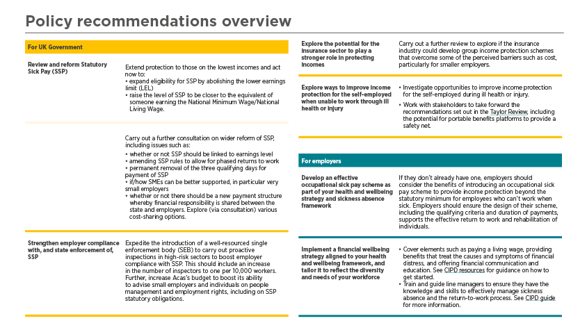 To adequately support people’s health and employment outcomes, the CIPD’s recommendations for the UK Government and for employers are as follows: